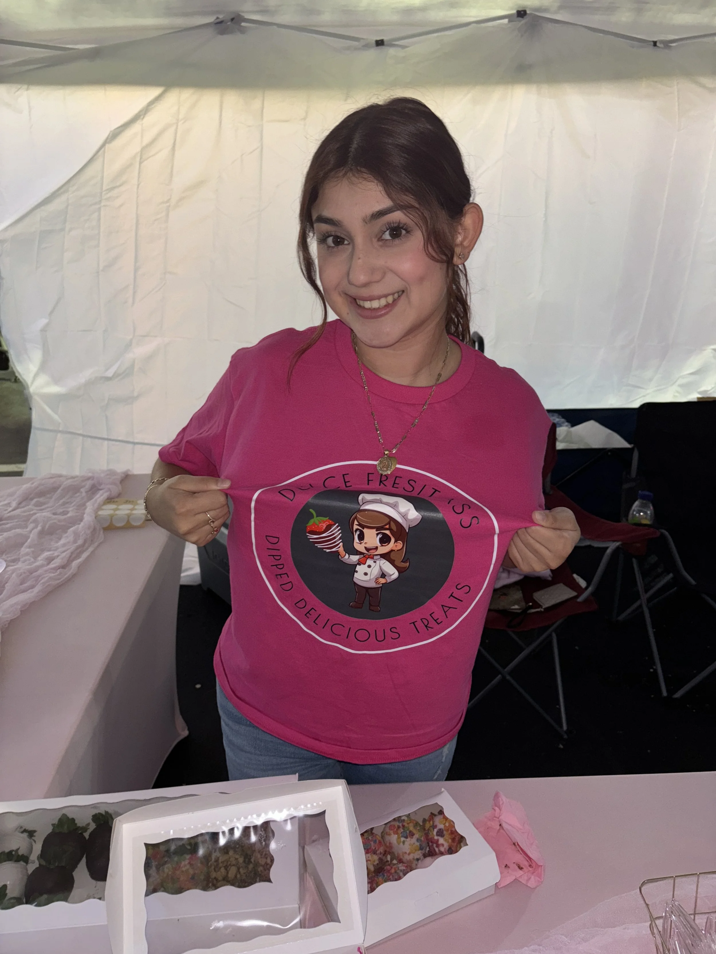 R.4.S had the pleasure of collaborating with Dulcefresitass to create the perfect logo for her Delicious Treats business. We also supplied matching pink T-shirts to complete the look!